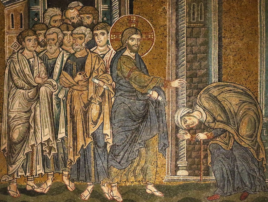 Anónimo Jesús cura a la mujer encorvada, Mosaico del Duomo di Monreale, siglos XII-XIII, Sicilia