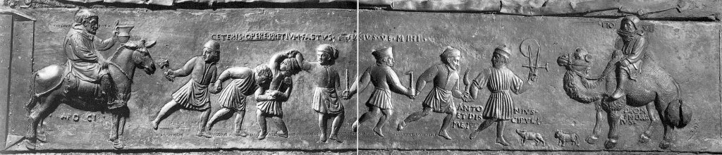 No muchos habrán oído hablar de Antonio Averlino (más conocido como el Filarete), arquitecto y escultor florentino del s. XV. Su pseudónimo significa aquél que ama la virtud. Entre otras obras, realizó una de las puertas de entrada a la Basílica de San Pedro, en un periodo político muy convulso, entre 1433 y 1445 (¡la ejecución duró más de diez años!). La porta del Filarete es una gran mole de bronce siete metros de altura, y tiene dos grandes hojas, en las que hay representaciones de Cristo, de la Virgen, de San Pablo, episodios de la vida del Papa Eugenio IV (quién le encargó la obra), así como varias escenas de la vida de San Pedro, etc. Para algunos, la puerta representa una síntesis conceptual de la universalidad de la Iglesia, así como un perpetuarse en ella el Imperium, según el espíritu humanista del momento.