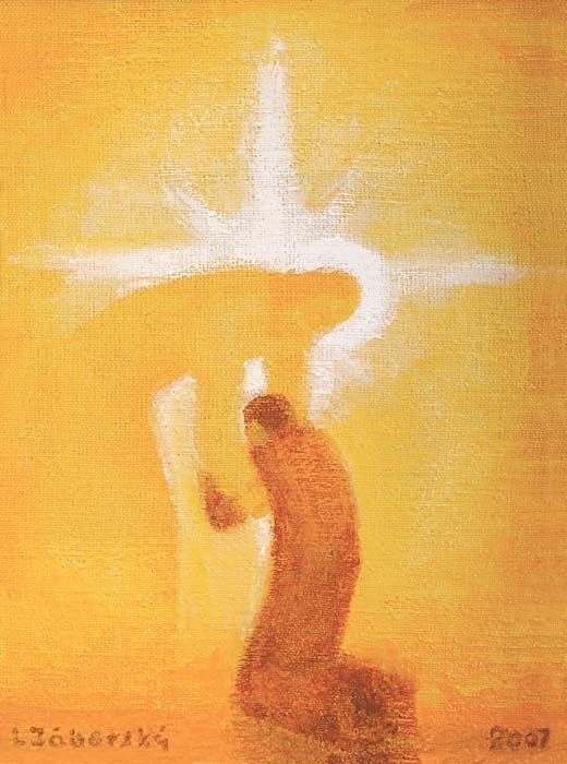 Inspirado en su profunda fe y en su propia experiencia de sufrimiento, el arte de Ladislav Záborský resuena con el mensaje de este himno. Durante su tiempo en prisión1, Záborský vivió una oscuridad tanto física como espiritual, pero en su pintura siempre se abrió paso la luz, un símbolo de la gracia divina y la esperanza que persevera a pesar de las sombras. Este himno de Laudes, que celebra a Cristo como la «Luz auténtica del mundo», refleja perfectamente la esencia de su obra: una luz más brillante que el sol, un resplandor que penetra hasta lo más íntimo del corazón humano, incluso en los momentos de mayor oscuridad.