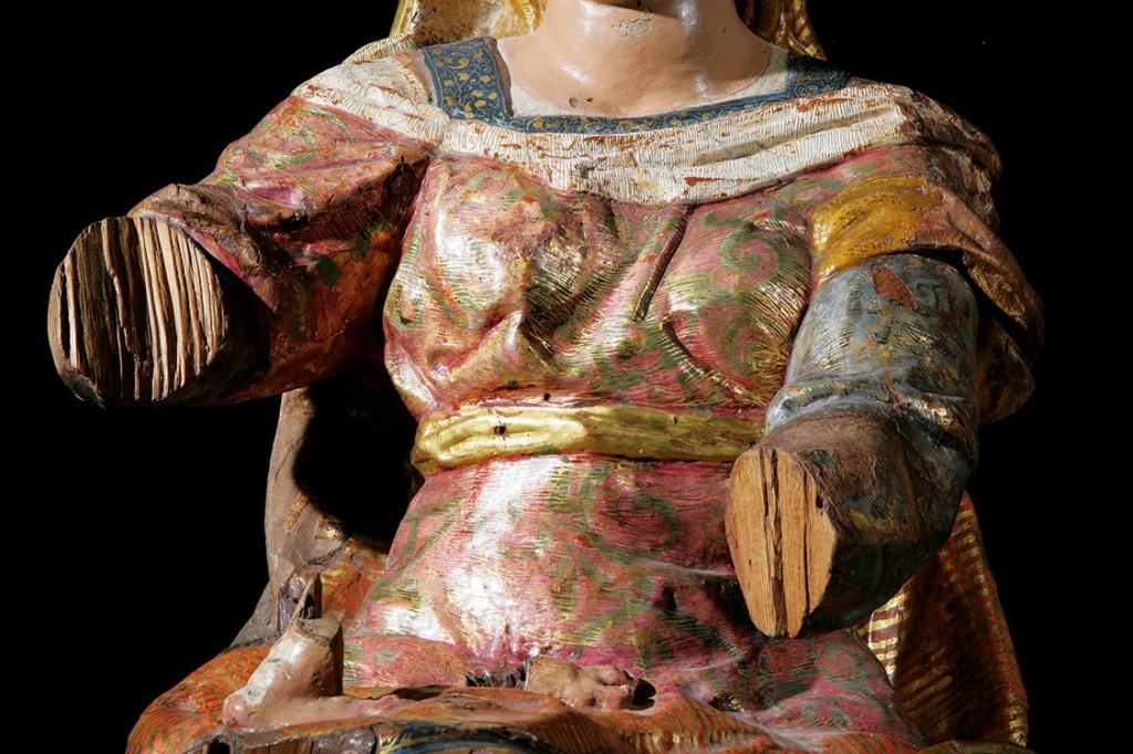 Cuando la estatua fue arrojada a un montón de basura fuera de la ciudad, todo lo que quedaba del niño Jesús eran dos tocones donde sus pequeños pies colgaban de la rodilla de su madre.