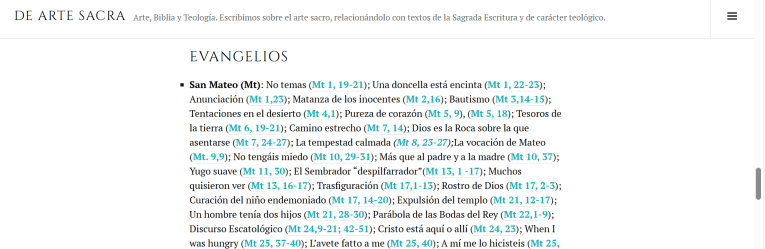 Si lo que buscas es profundizar en un pasaje concreto de la Escritura, puedes hacerlo desde las referencias bíblicas. Así, el sitio te mostrará alguna referencia artística de ese texto, y cómo la imagen puede ayudarte a entenderlo de otro modo — a veces más hondo, más humano o más divino.