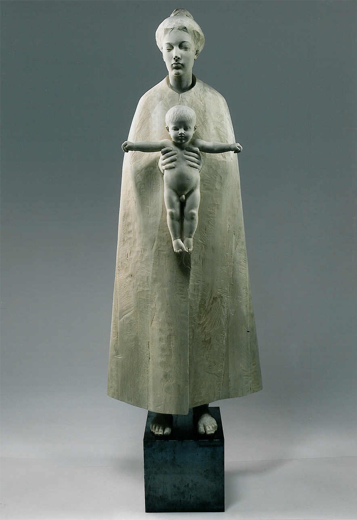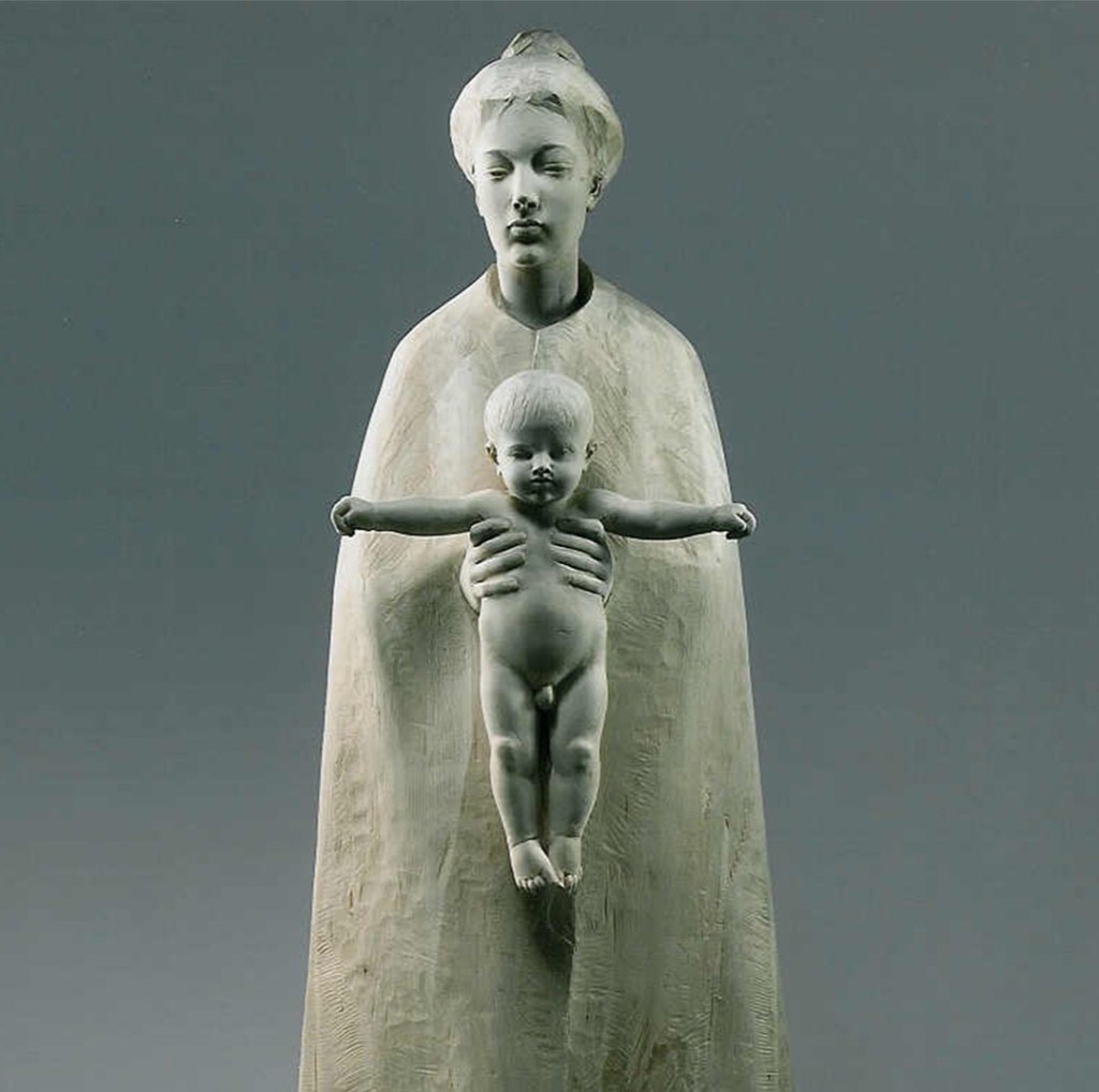 En algunes imatges el Nen Jesús no apareix amb els braços oberts en gest d’acollida, sinó amb els braços en creu. És una representació sorprenent, perquè introdueix dins el pessebre allò que encara no ha passat: la Pasqua. Maria sosté el fill que neix, però també el Fill que serà ofert. El naixement ja apunta cap a la mort.